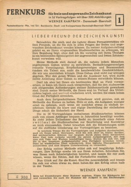 1948 erblickte ich als Fernkurs-Kamprath das Licht der Welt. Mit dem „Fernkurs für freie und angewandte Zeichenkunst“ begann meine Karriere als Fernschule. Bereits kurz nach dem Start waren meine Kurse für ihre hohe Qualität, ihre modernen Lernmethoden und eine gute Betreuung bekannt. Nach dem Zeichenkurs ging es Schlag auf Schlag, und ich baute die Zahl der Kurse zügig aus. Der Fokus lag nun auf stark nachgefragten technischen und kaufmännischen Abschlüssen.
